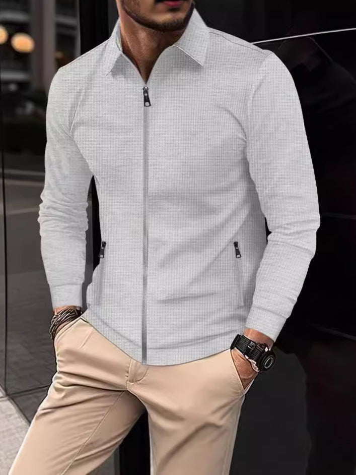 JACKET CARDIGAN ZIPPER JACKET CASUAL LONG SLEEVED LAPEL WAFFLE JACKET
