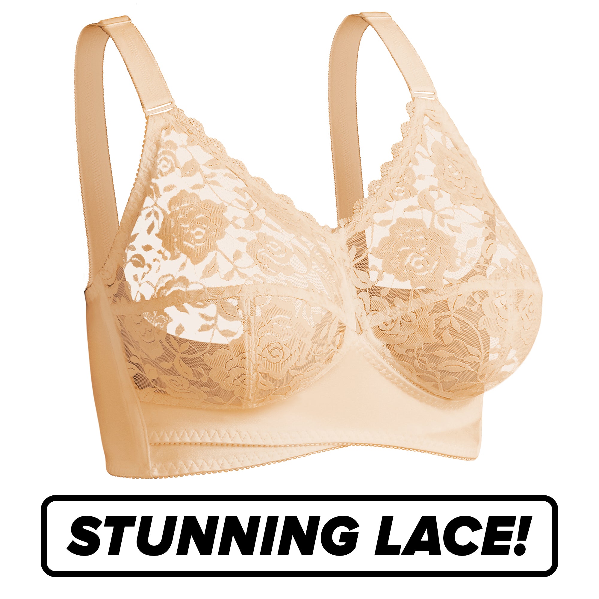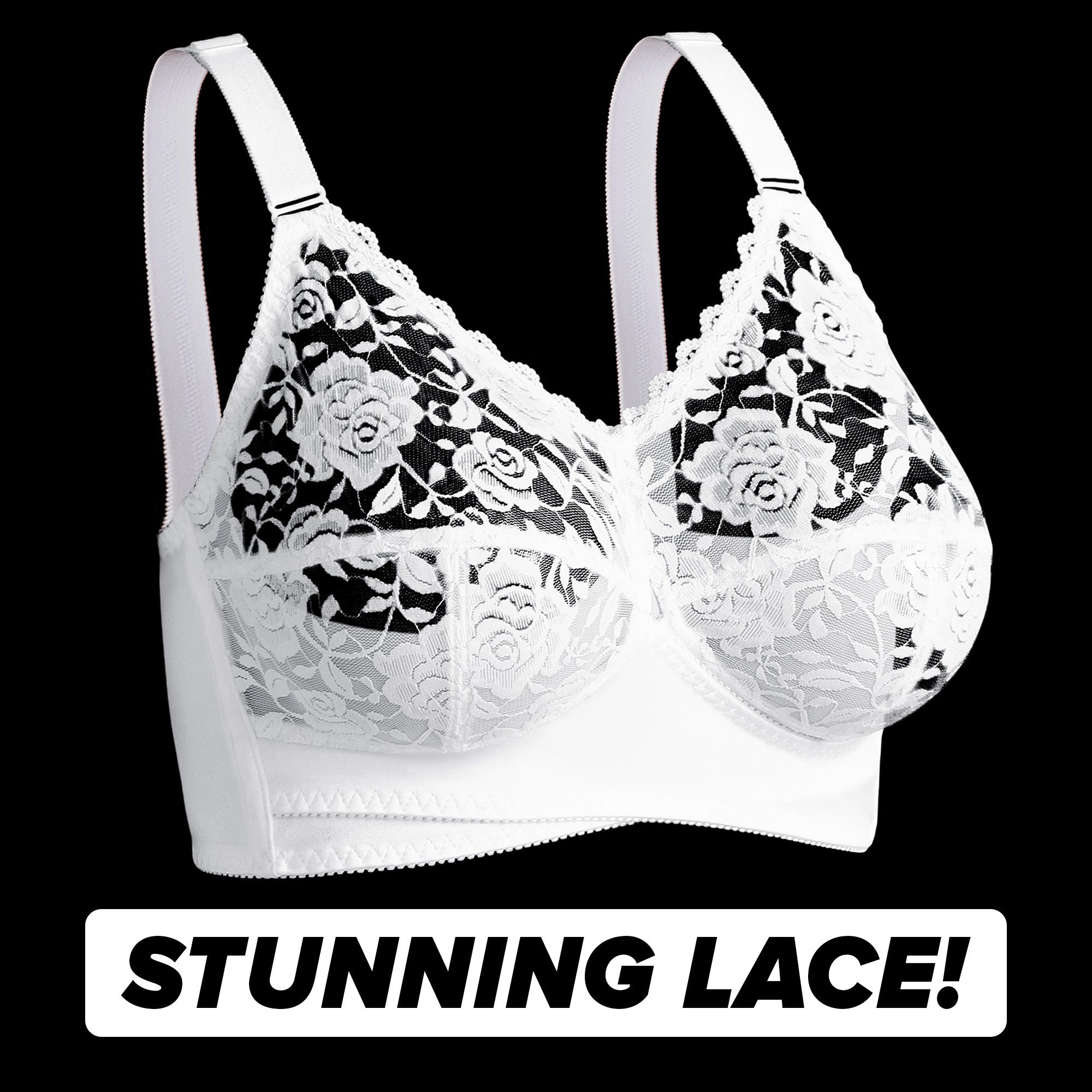 Innovative cross-wrap front and stunning stretch-lace – gives you instant lift and a stunning look!