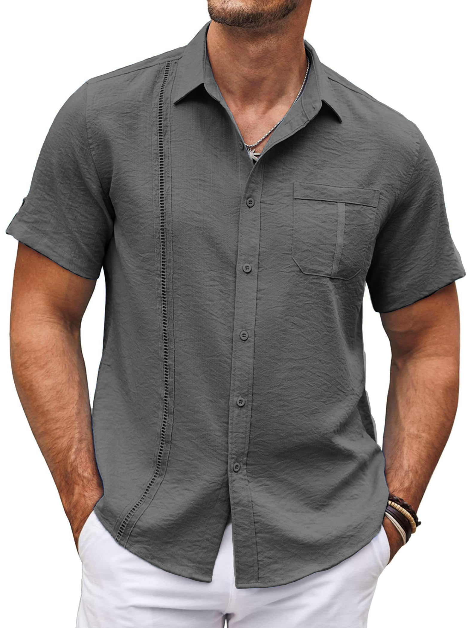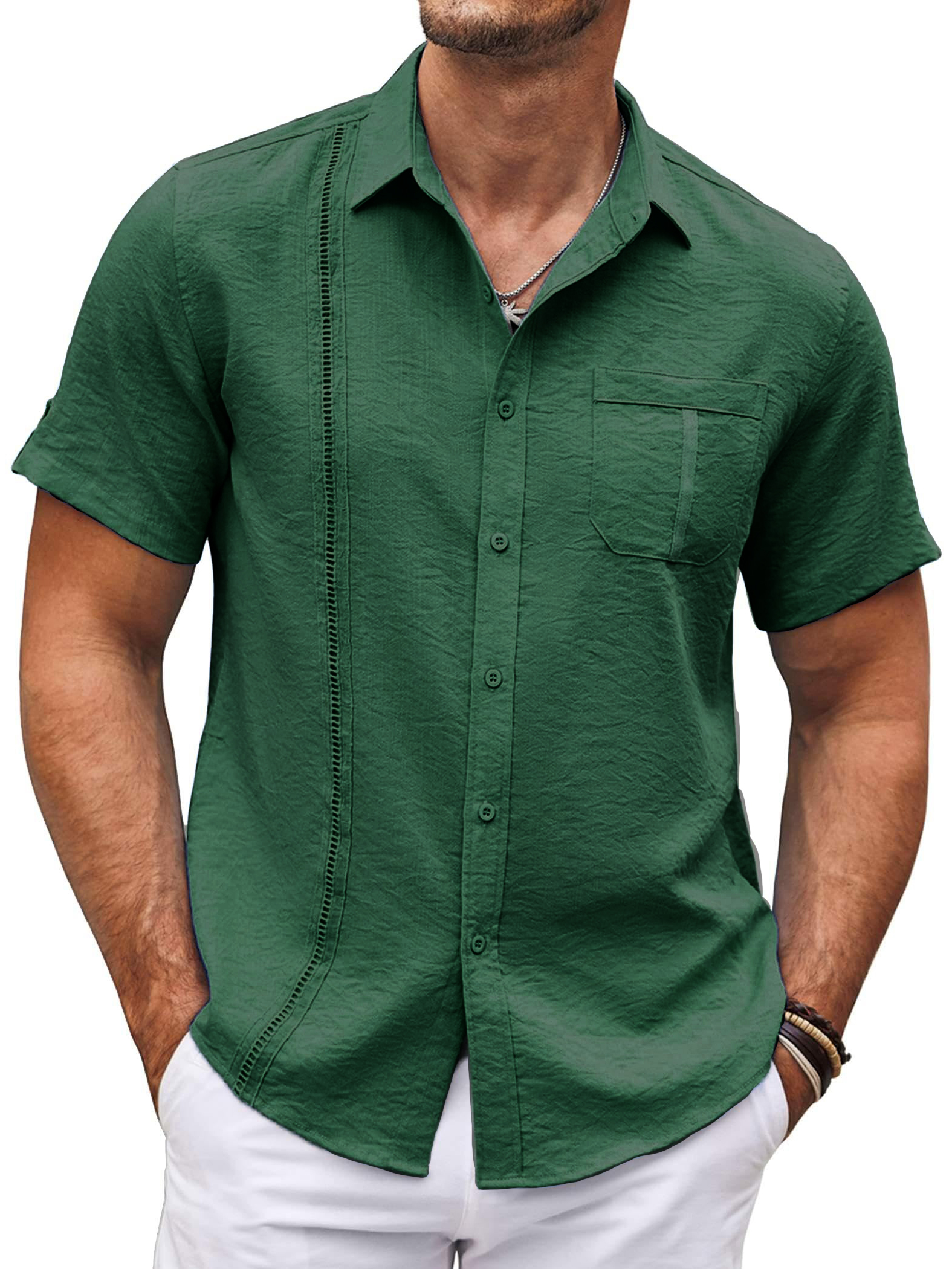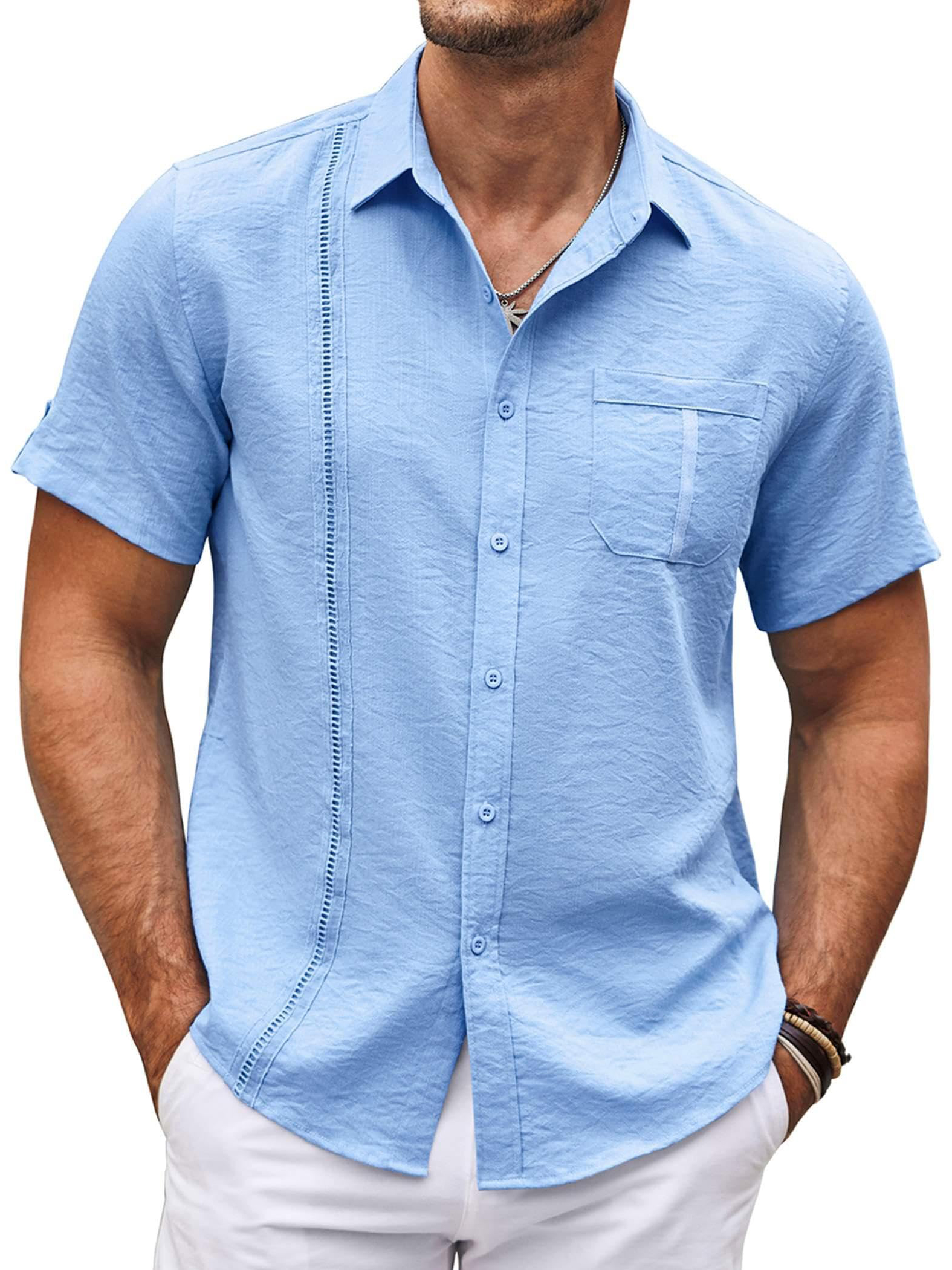 Men's Hawaiian Basics Casual Beach Pocket Short Sleeve Shirt