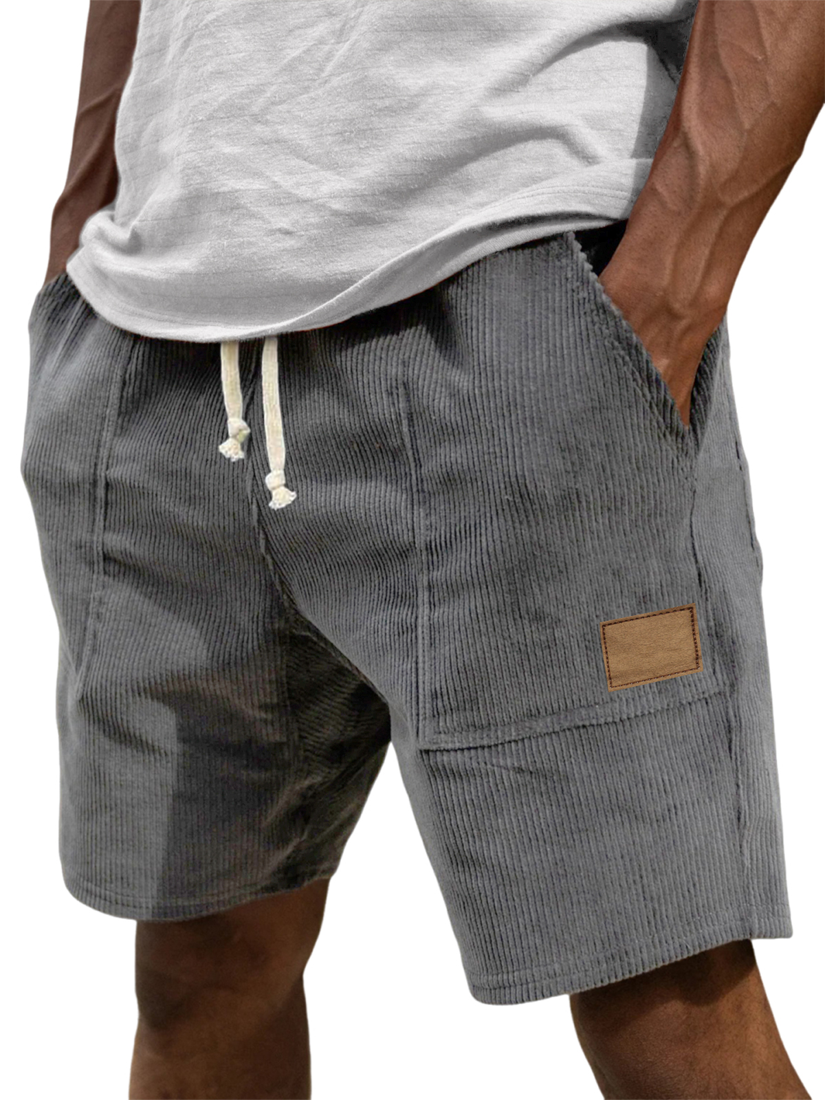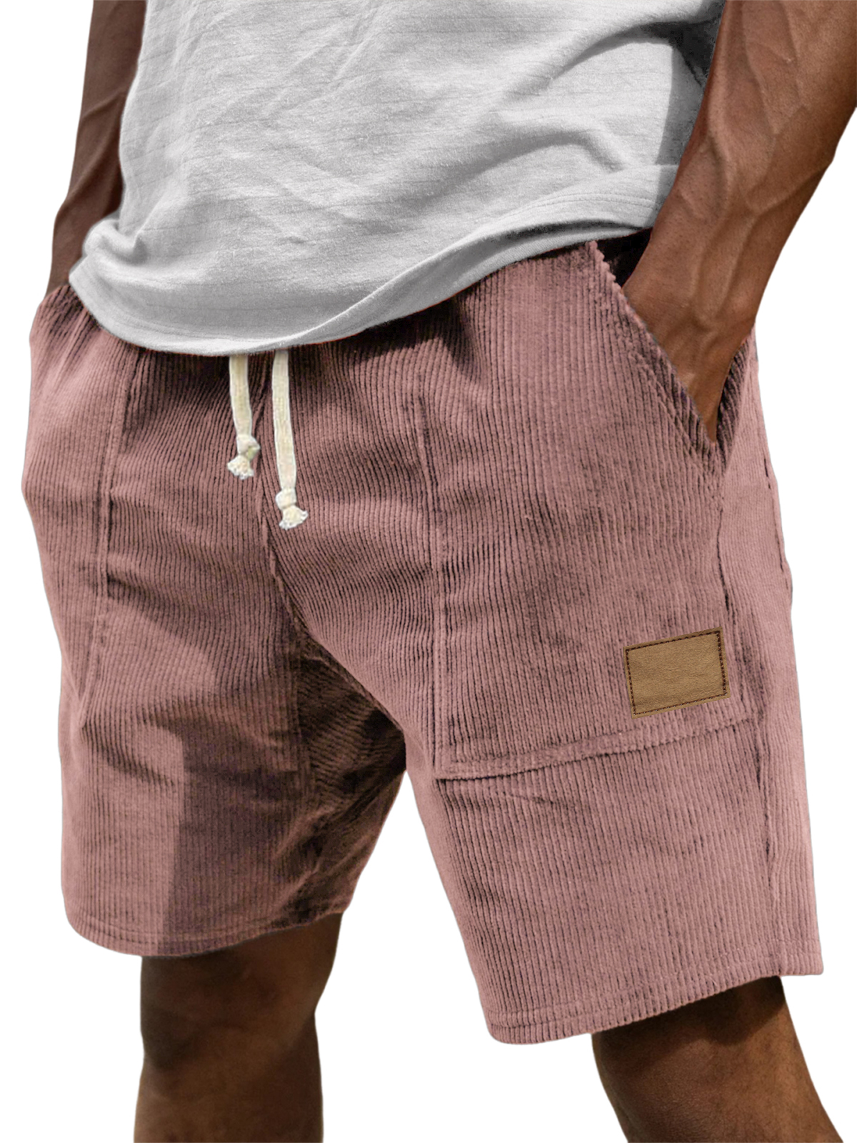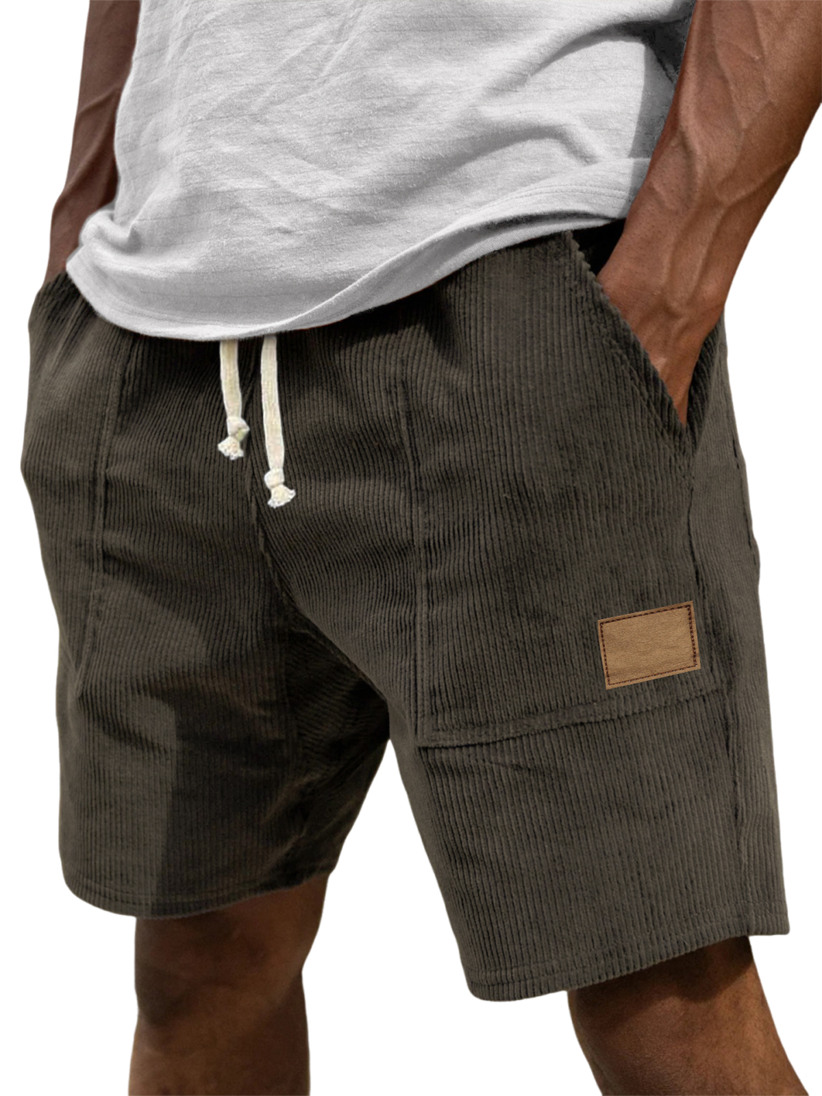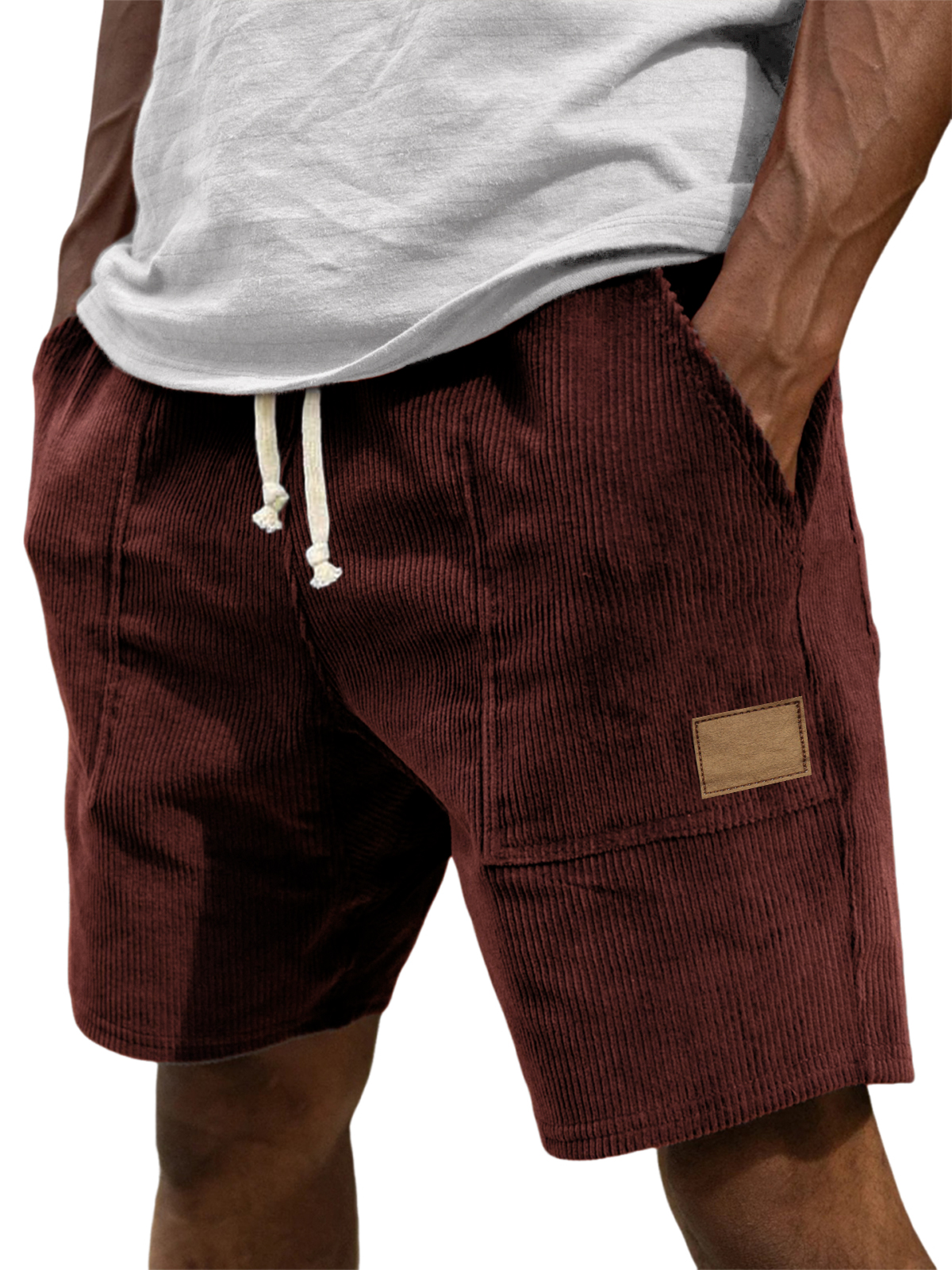 Men's Stylish Corduroy Simple Embroidered Label Flat Seam Pocket Lace-up Versatile Shorts