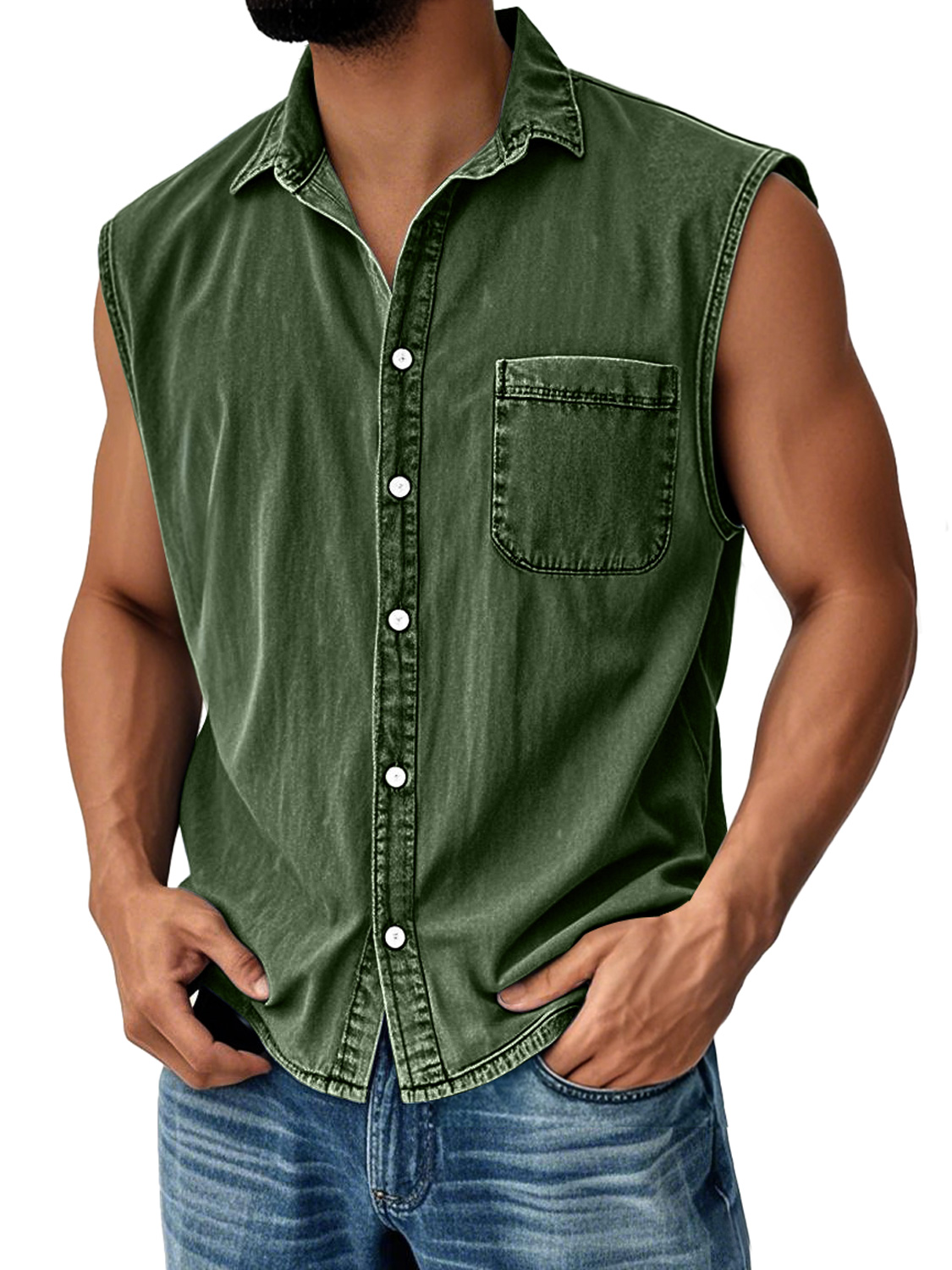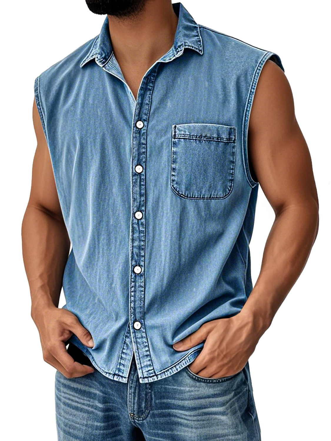 Men's Vintage Everyday Lapel Pocket Casual Sleeveless Shirt