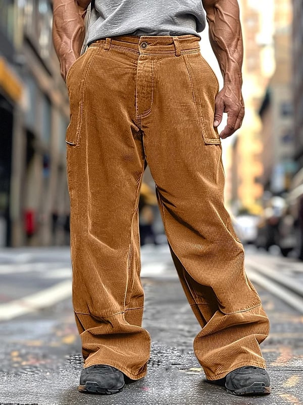 Men's Vintage Waffle Knitted Outdoor Multi-pocket Cargo Pants Trousers