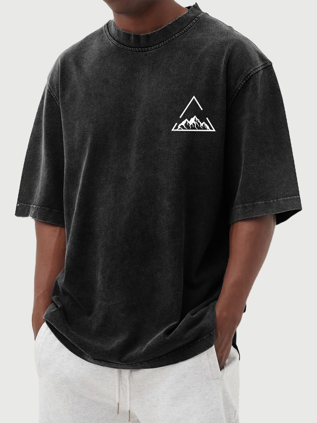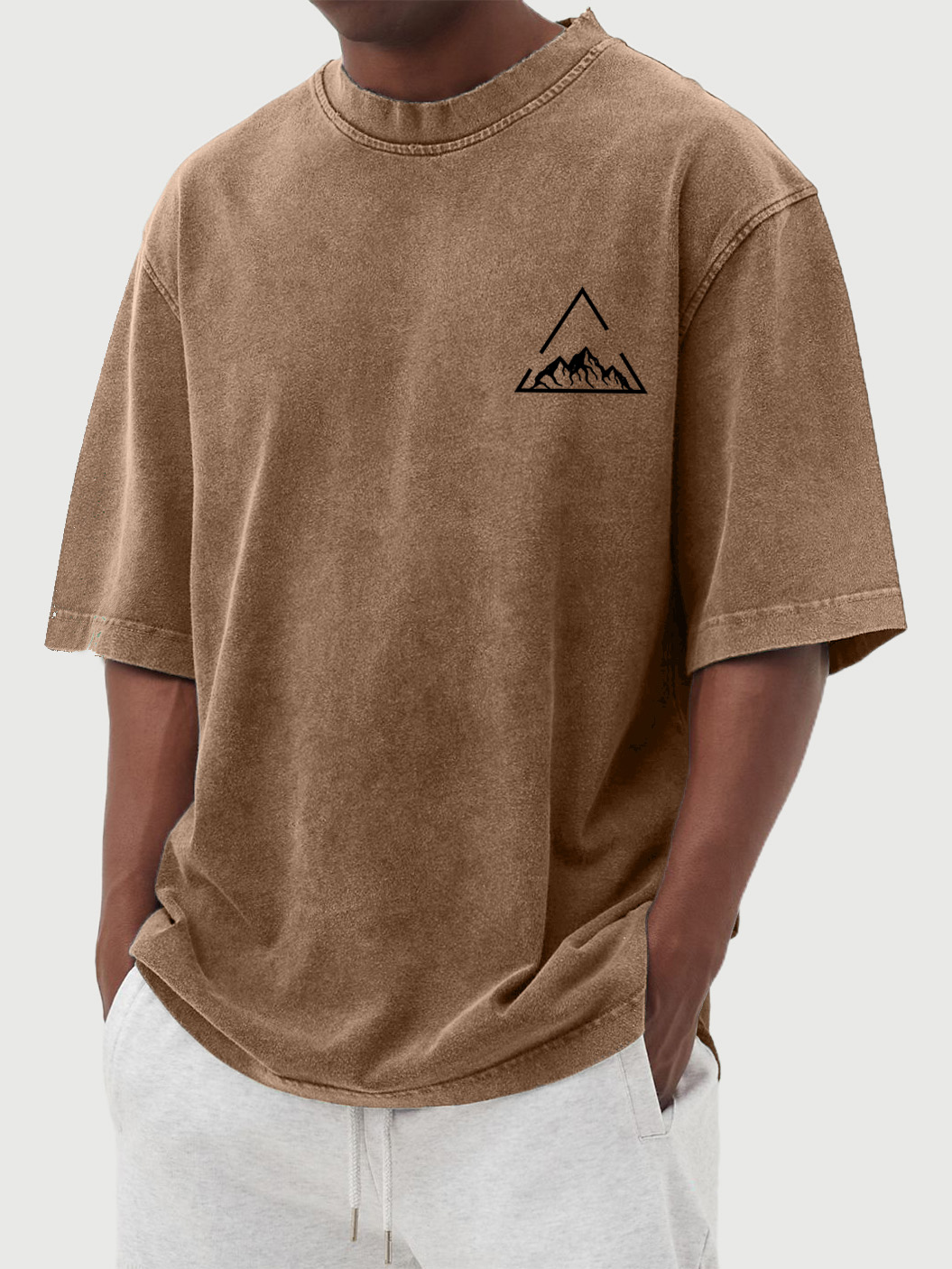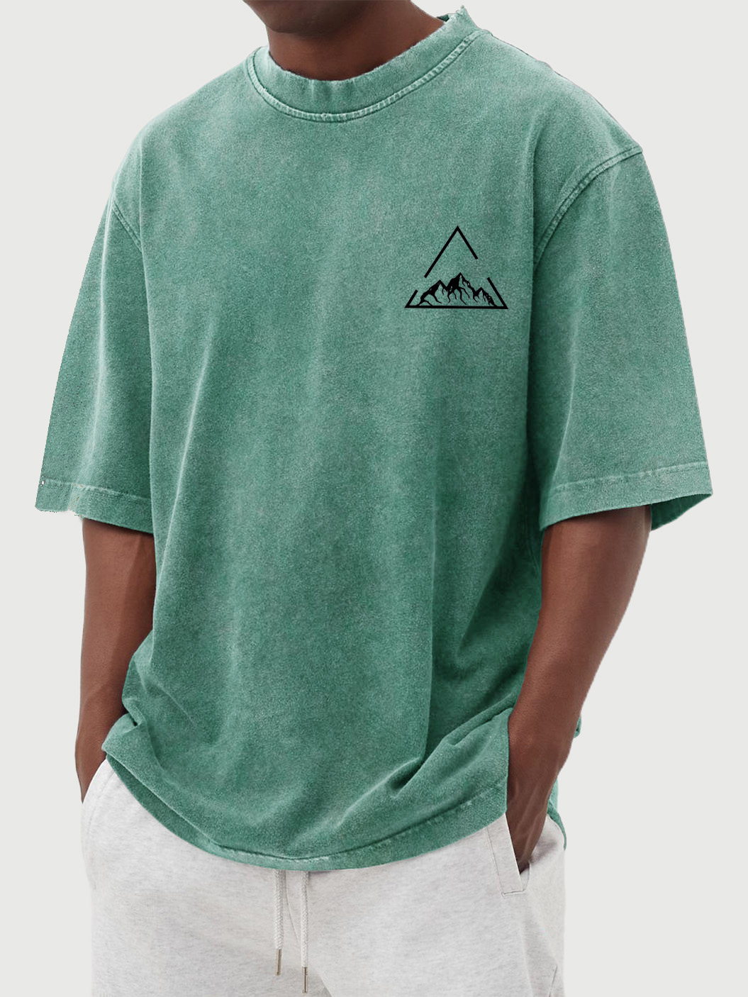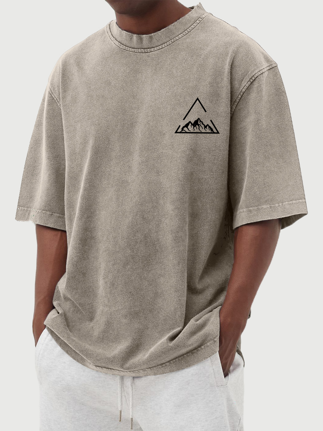 Men's Vintage Wash Triangle Mountain Print Short Sleeve T-Shirt