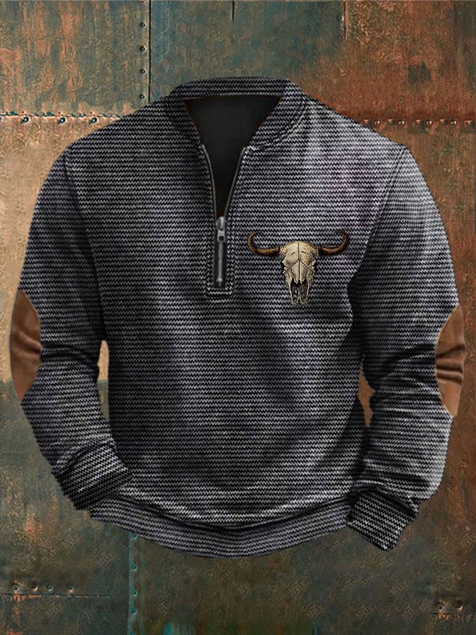 Men's Western Retro Textured Printed Sweatshirt