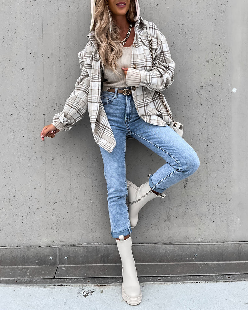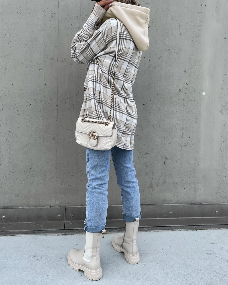 Plaid Shirt Jacket Loose Casual Turn-Down Collar Single Breasted Coat