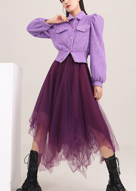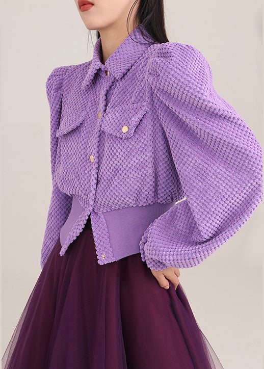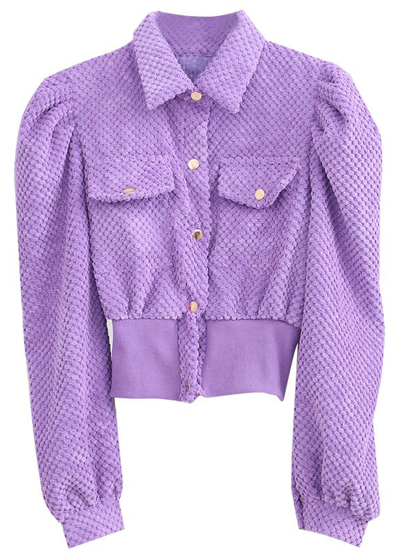 Simple Purple Puff Sleeve Button Coat Spring