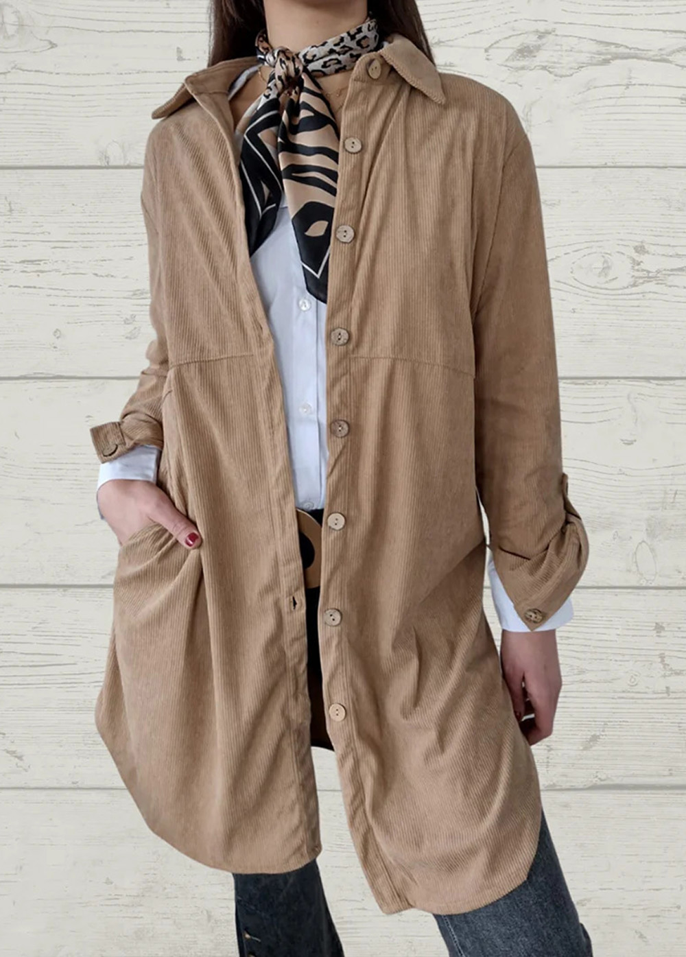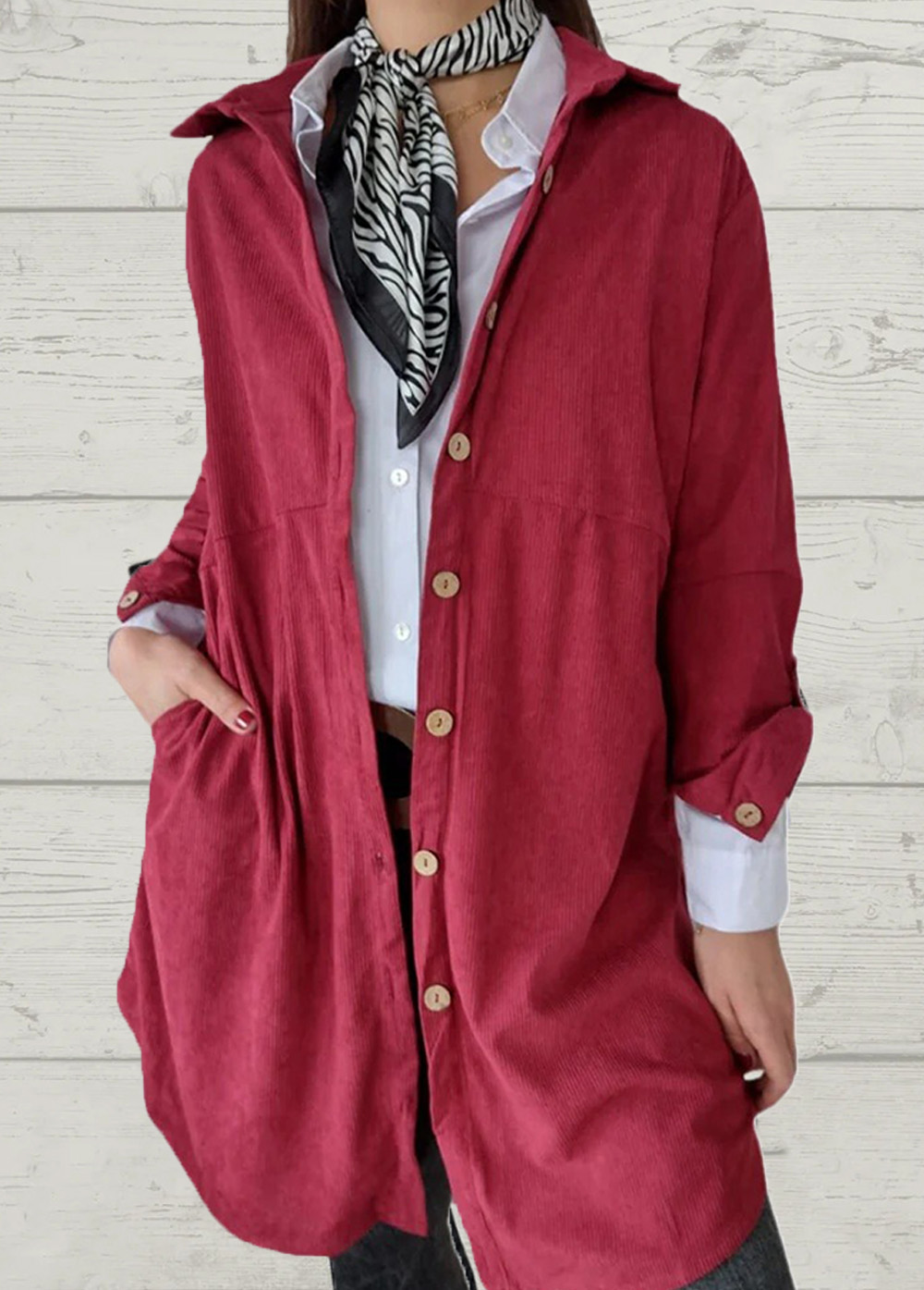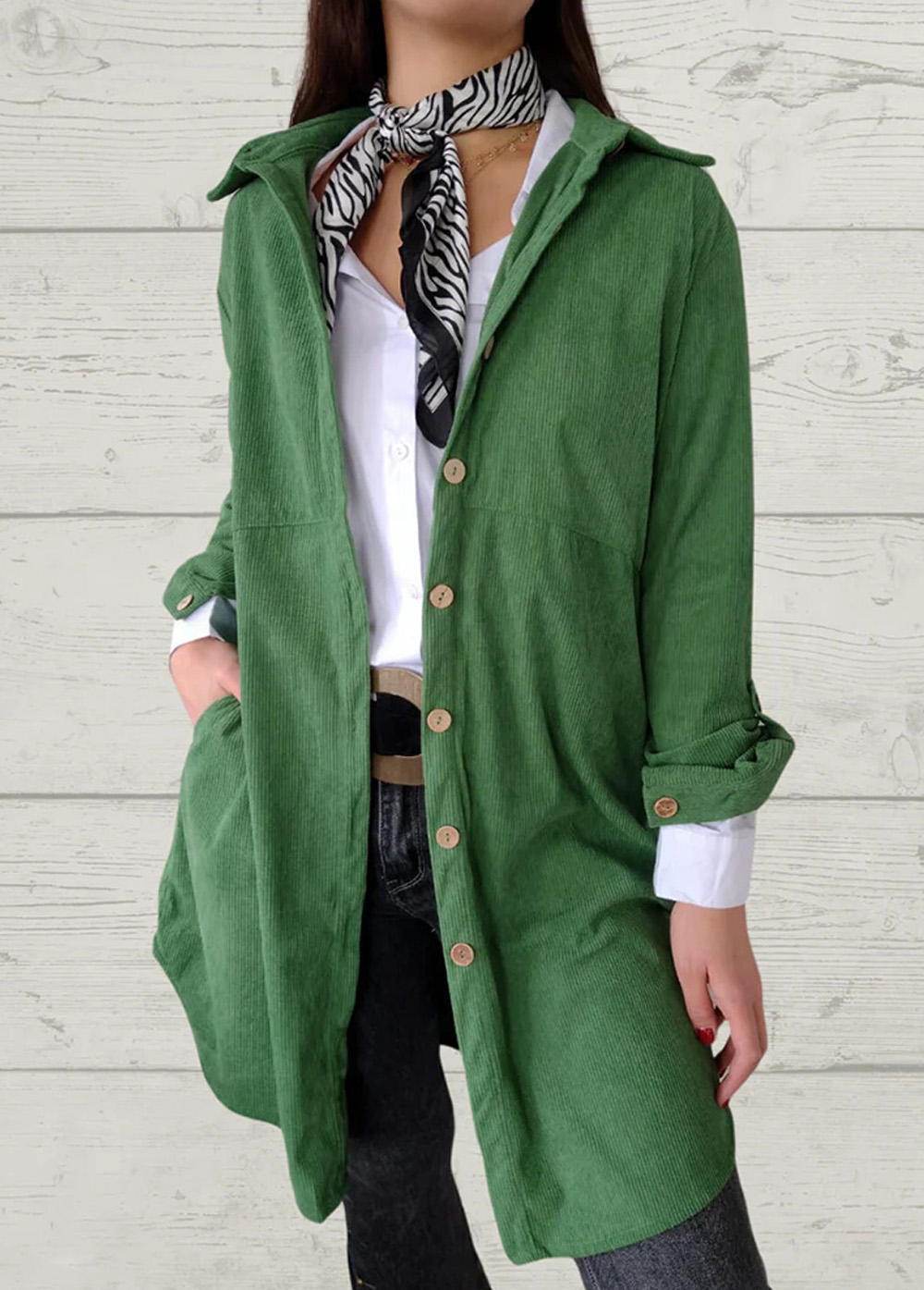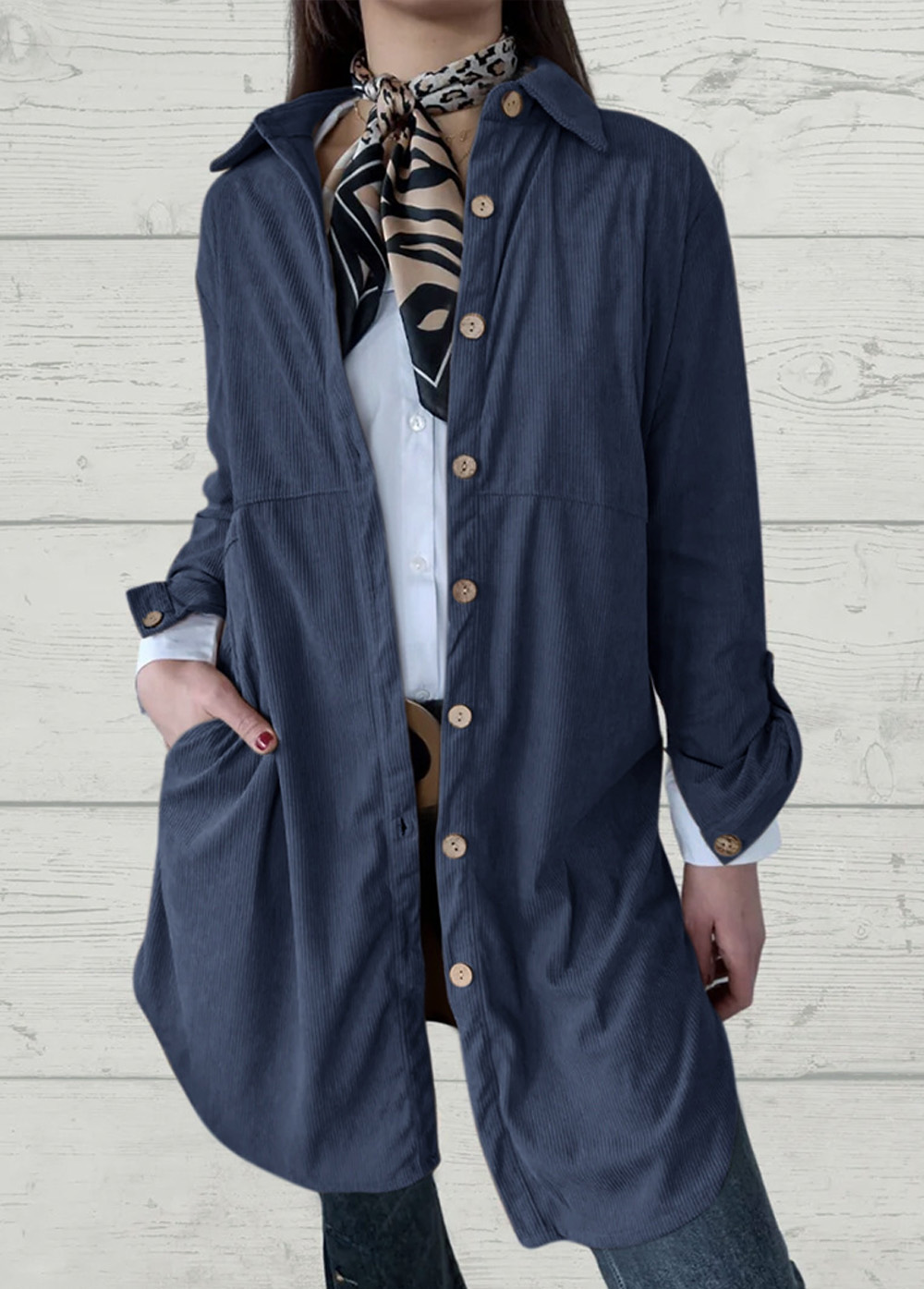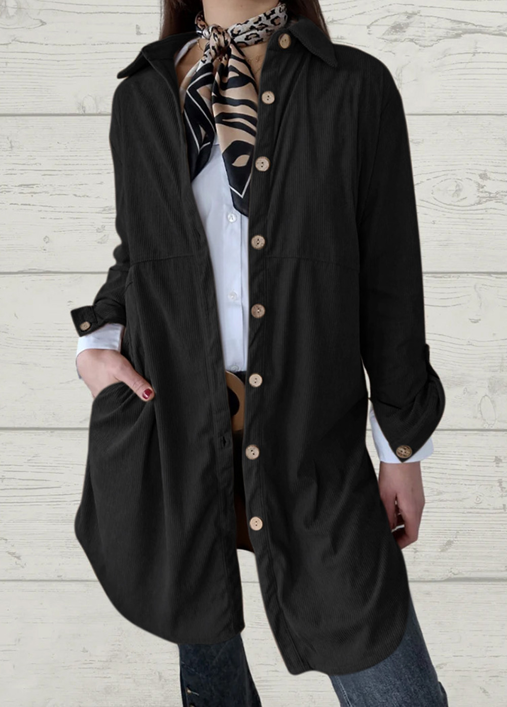 Stylish Solid Long Sleeve Corduroy Women Coat
