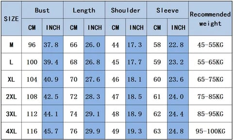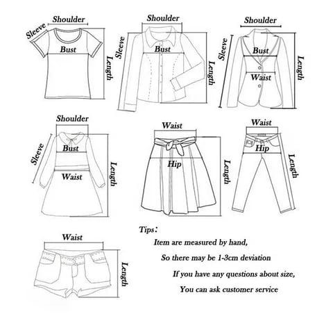 ✔ The size chart below refers to clothing dimensions, NOT your body measurements.