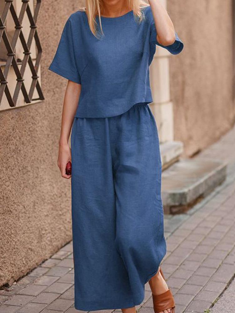 Ladies Cotton Linen Solid Color Fashion Casual Dress