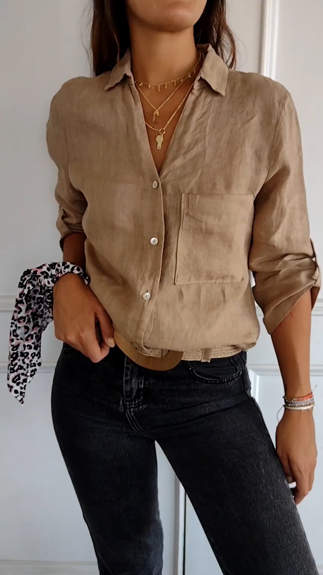 Women's Cotton Lapel Ruffle Tie Long Sleeve Loose Matching Shirt