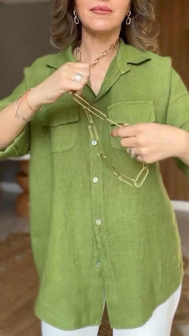 Cotton and Linen Lapel Long-sleeved Shirt
