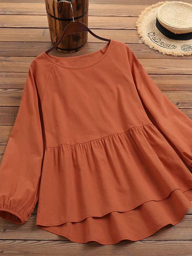 Cotton And Linen Solid Color Long Sleeved Shirt
