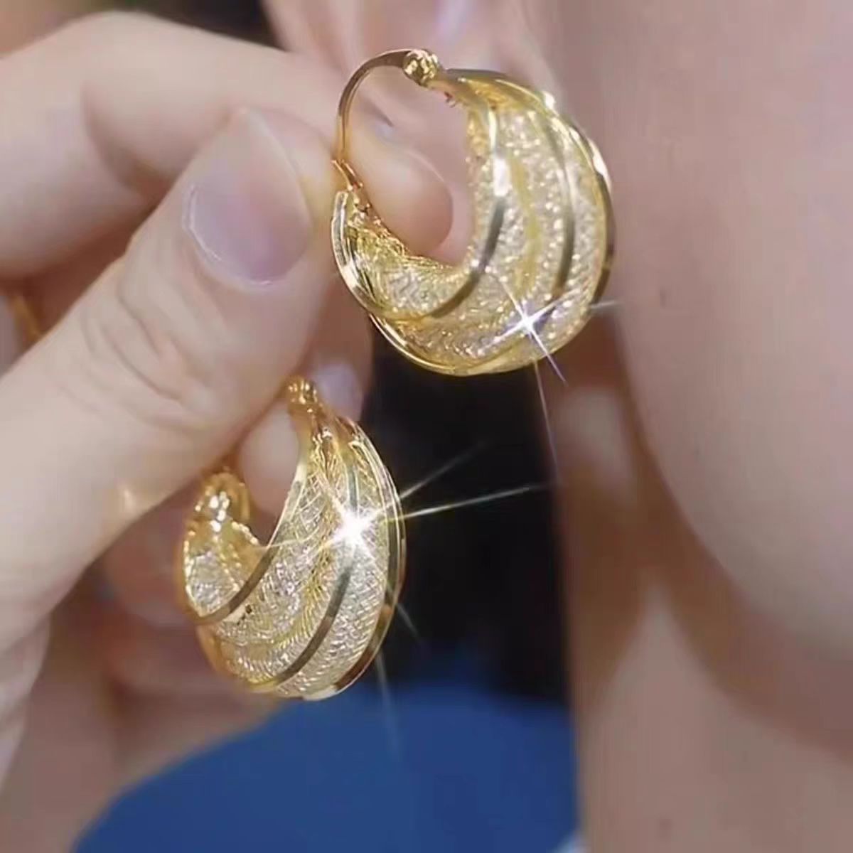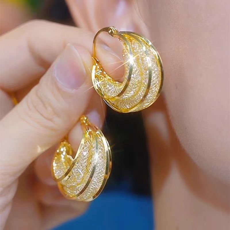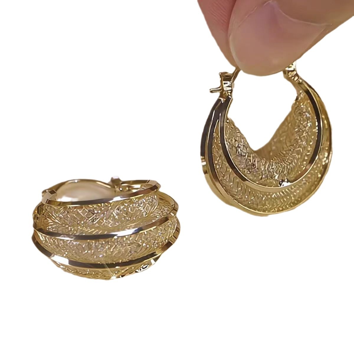 🌐 Chic Hollow Mesh Design – Intricate openwork pattern brings lightness and elegance to the classic hoop shape.