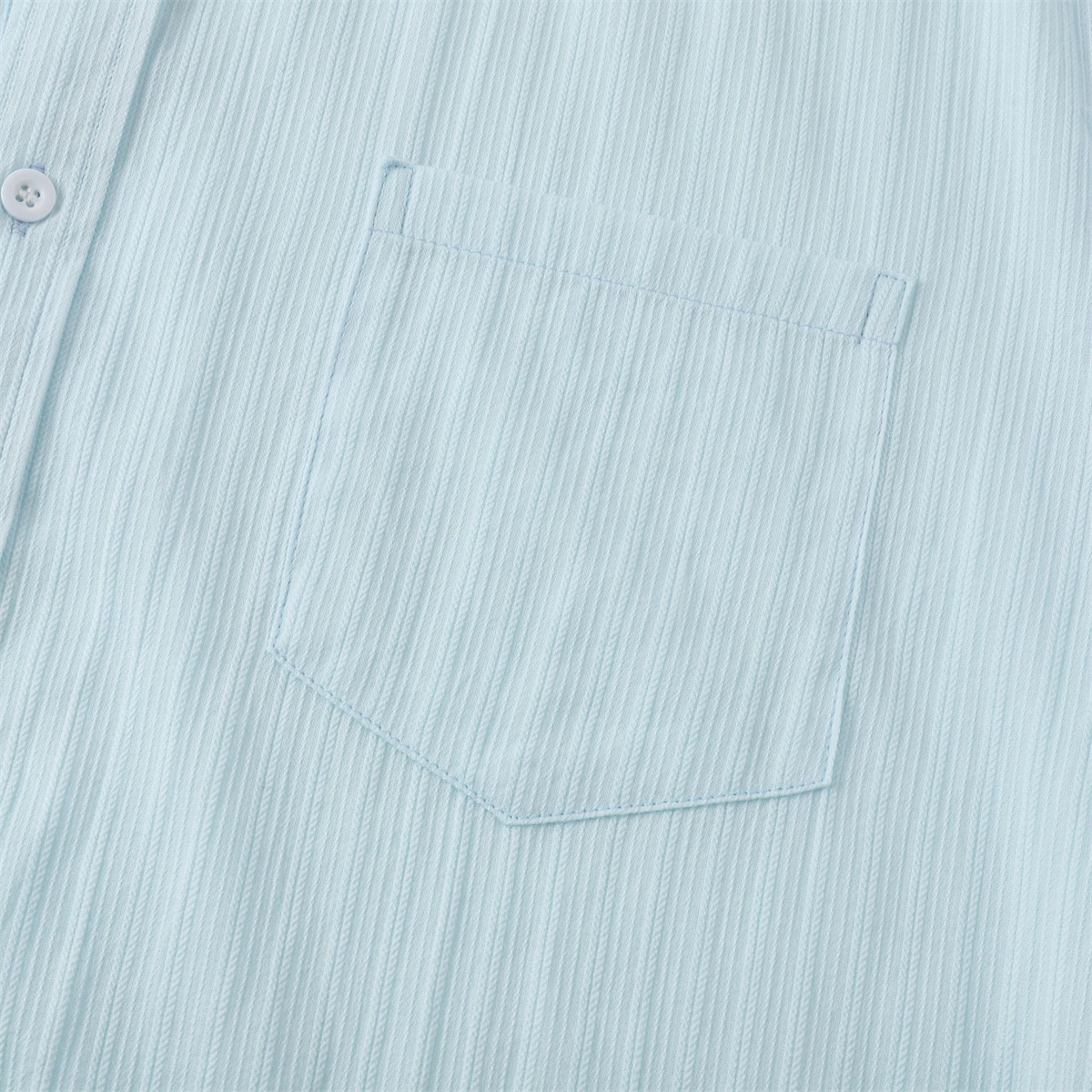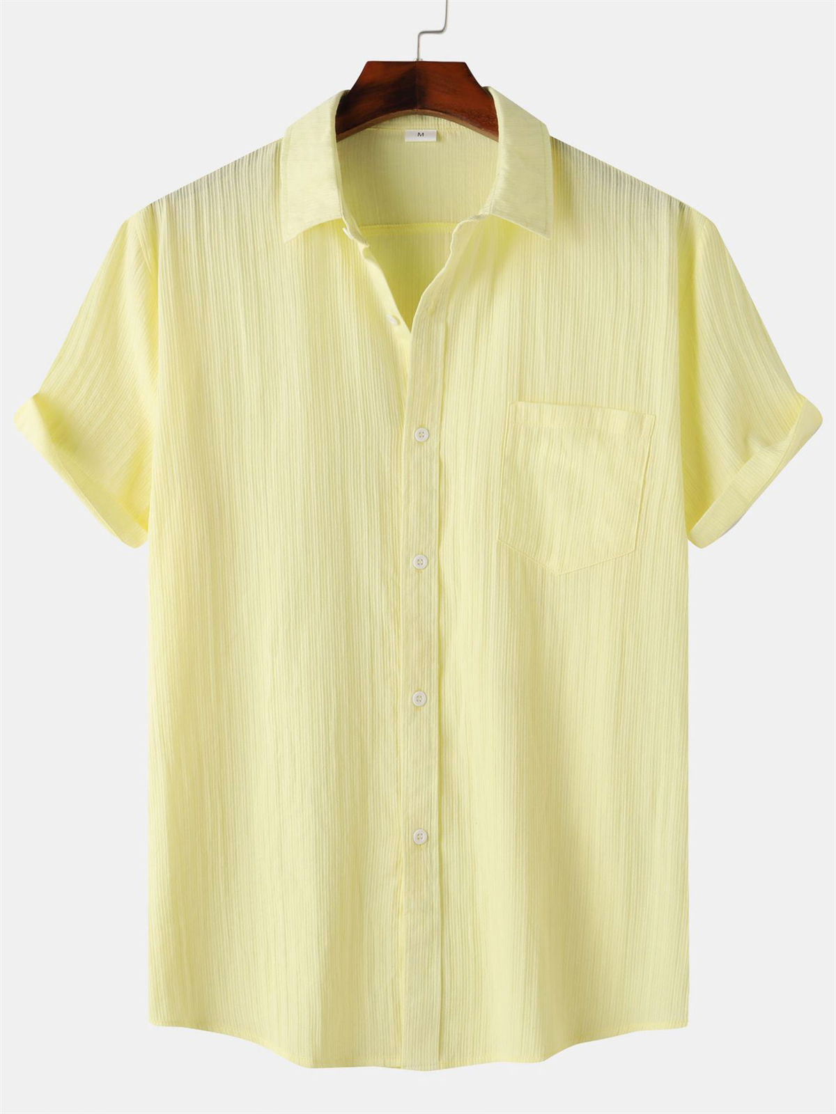 Men's Cotton And Linen High Quality Striped Pocket Short Sleeve Shirt