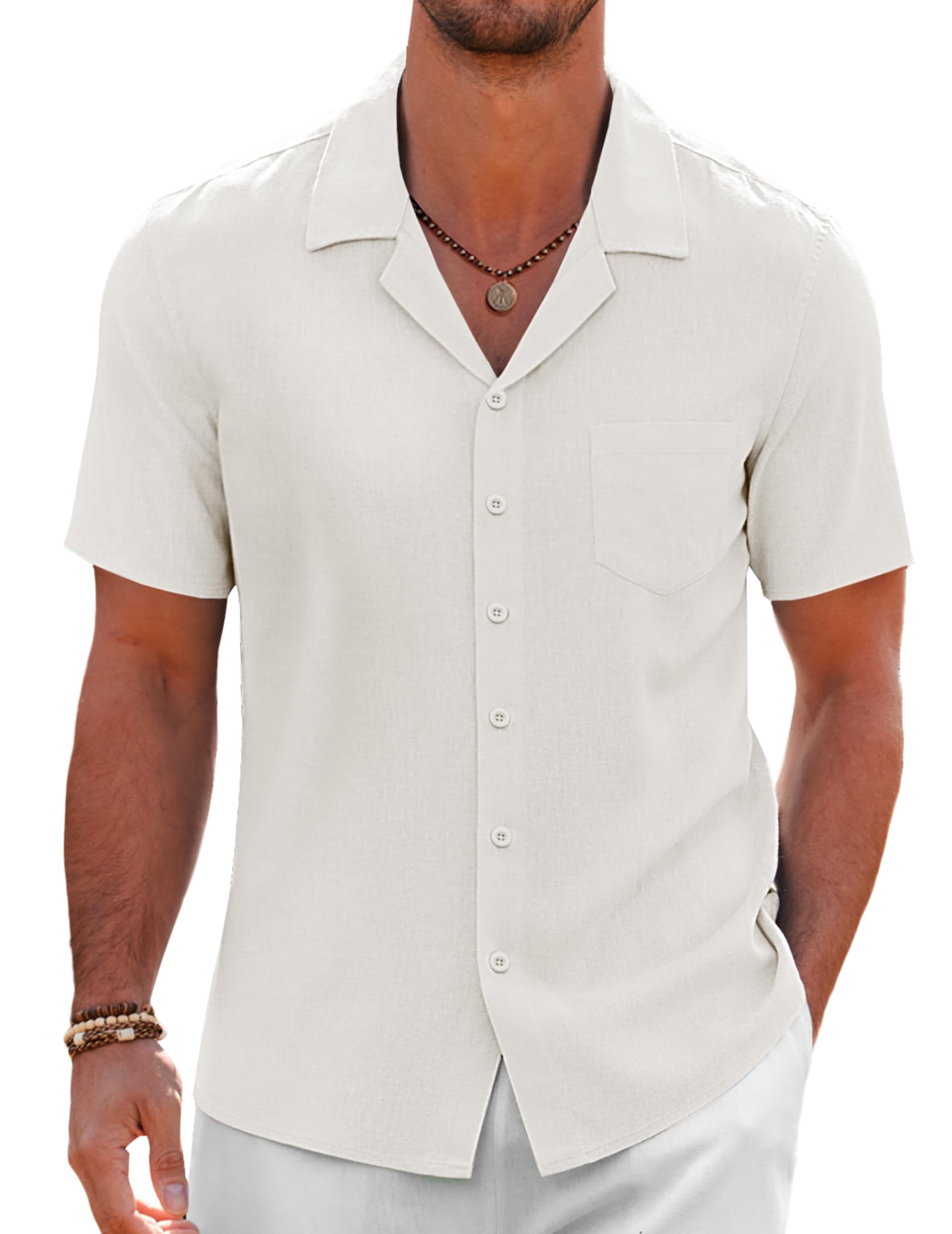 Men's Hawaiian Cuban Collar Pocket Short Sleeve Shirt