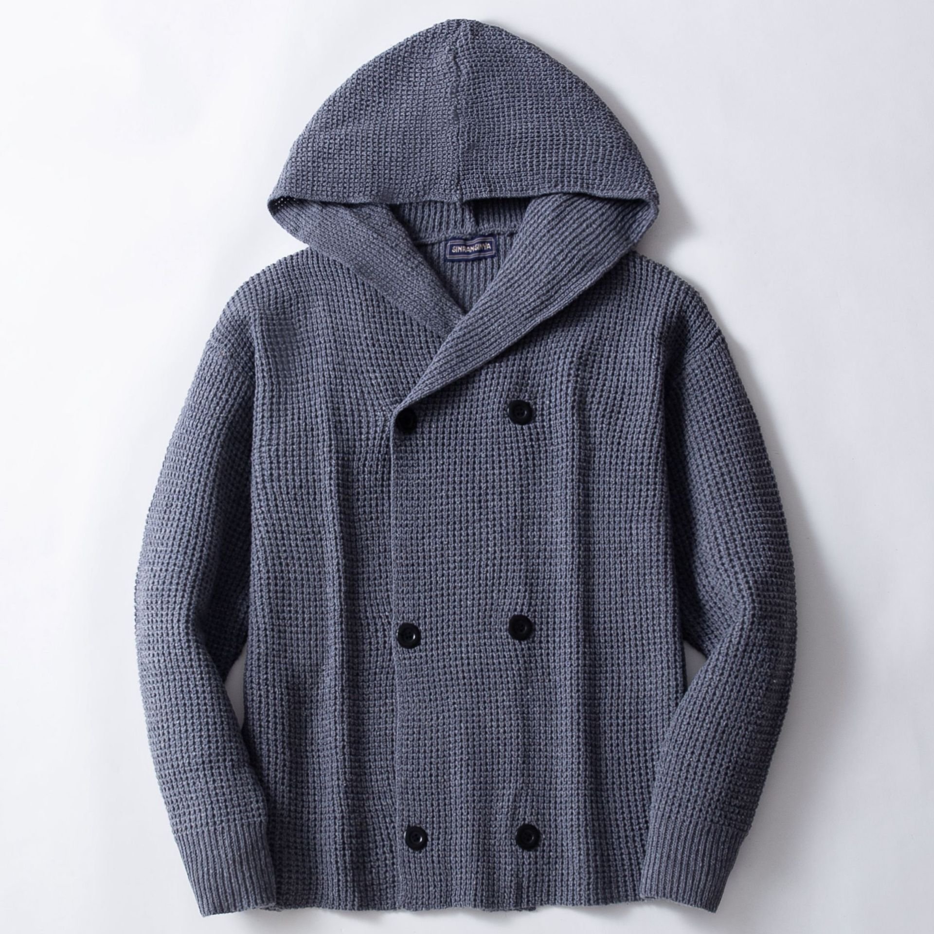 Men's Solid Color Double Breasted Hooded Sweater