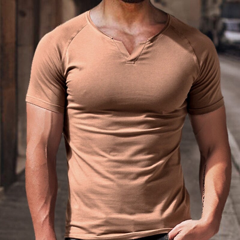 Men's Solid Color V Neck Short Sleeve T-shirt