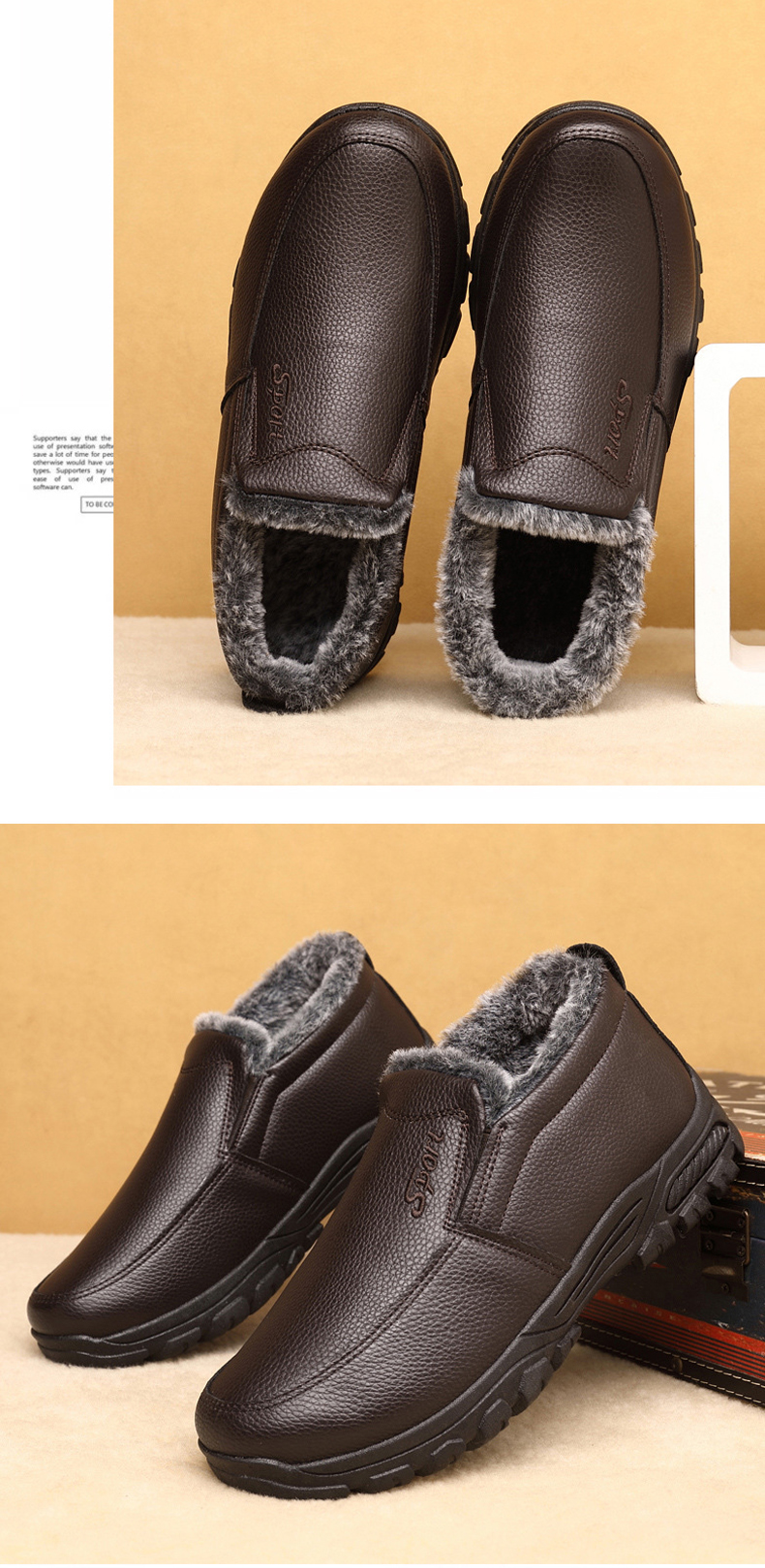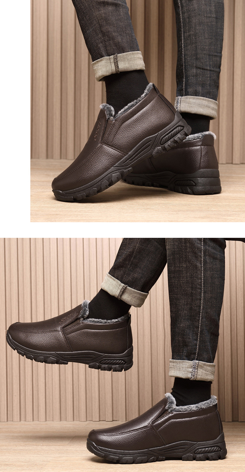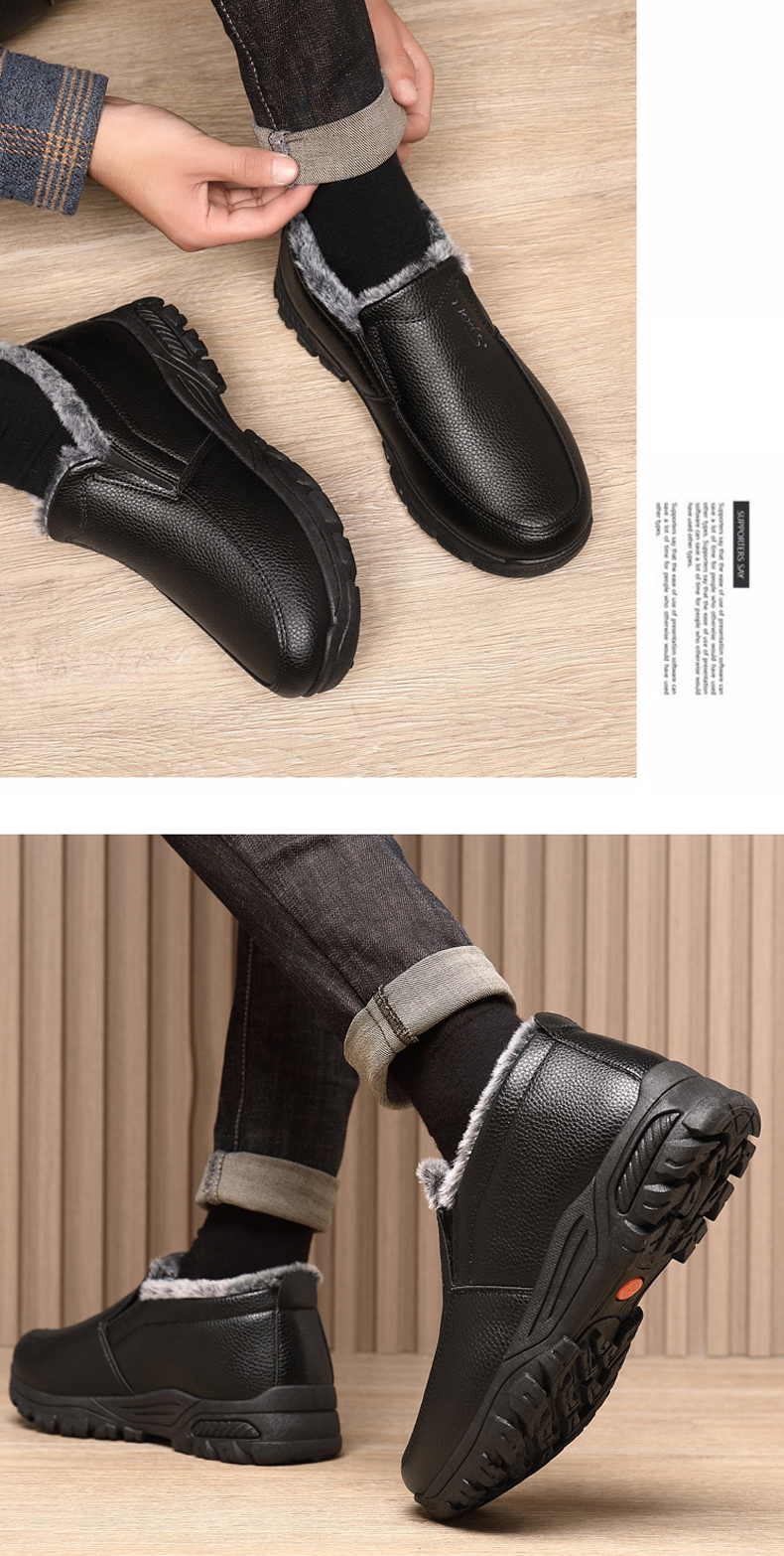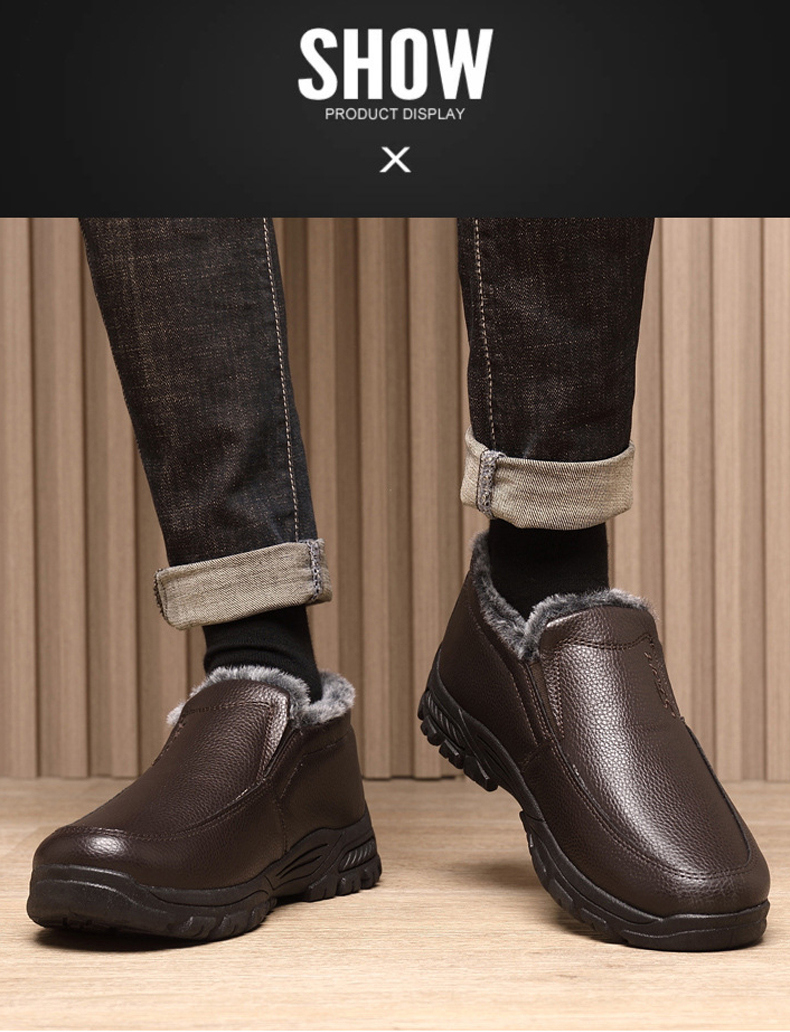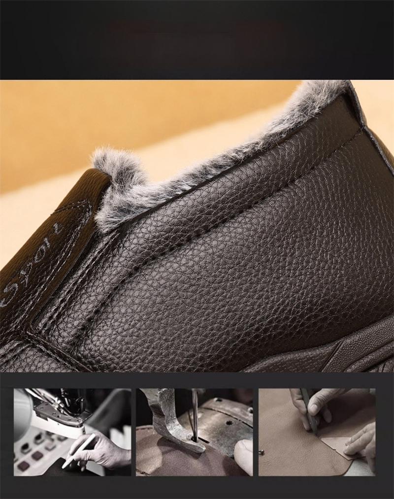 🔥Last Day 69% OFF-Men's Warm Comfortable Waterproof Fleece Cow Leather Snow Boots