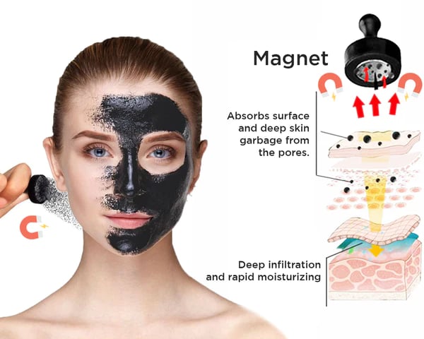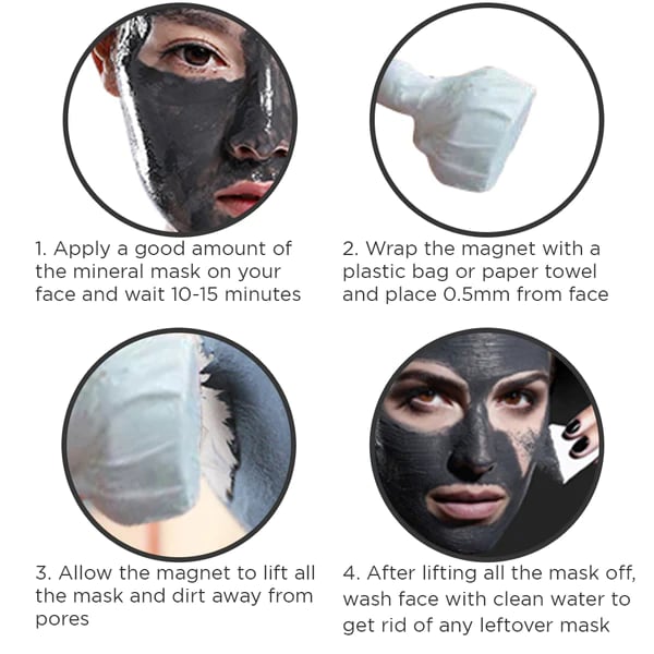 By using natural minerals that are magnetic in the formulation of our mud mask, we can allow it to penetrate deep into the pores and magnetize it along with the oils, toxins, and dirt to lift them all out of the skin with the included magnet. This helps clean the pores completely and allow them to function normally and release sweat and oils from our face again to prevent acne and blackheads from forming or building up.