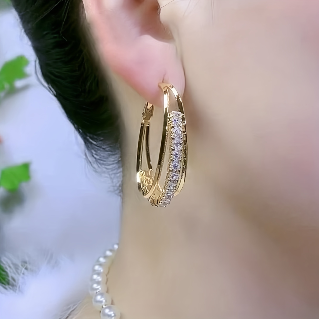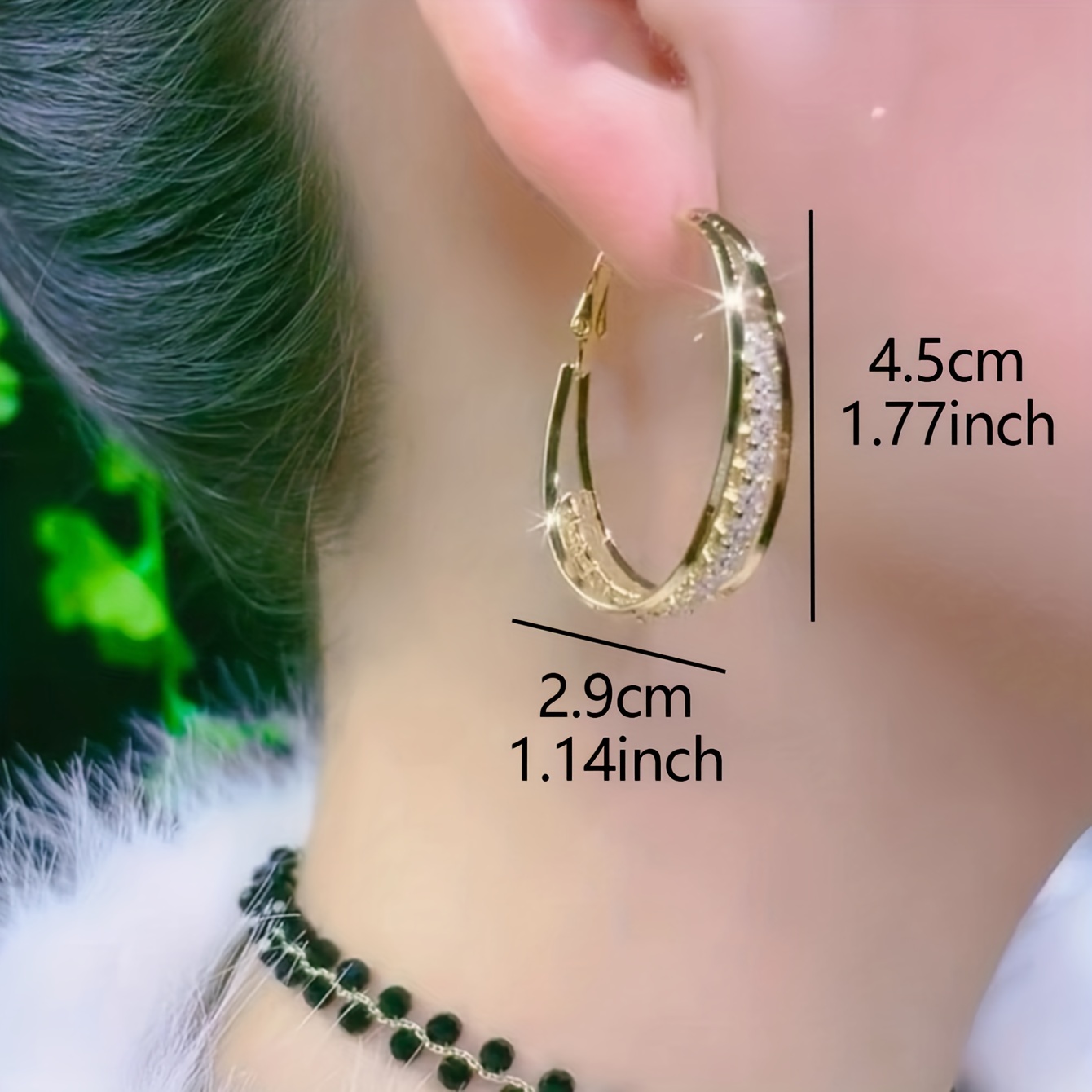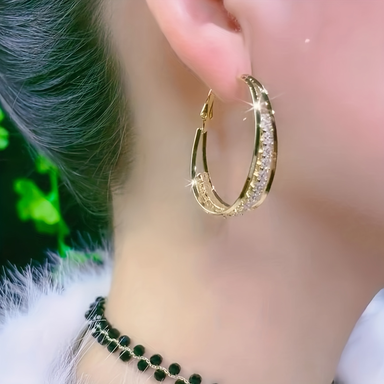 Shiny Rhinestone Decor Hoop Earrings - Retro Elegant Style Zinc Alloy Jewelry for Delicate Female Gift