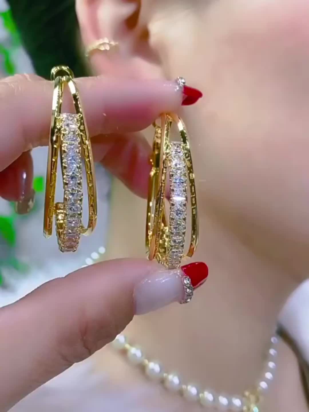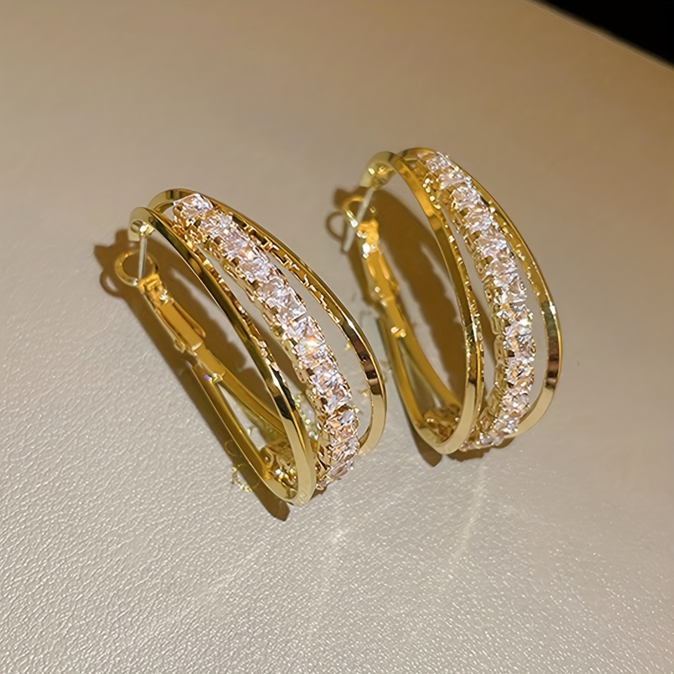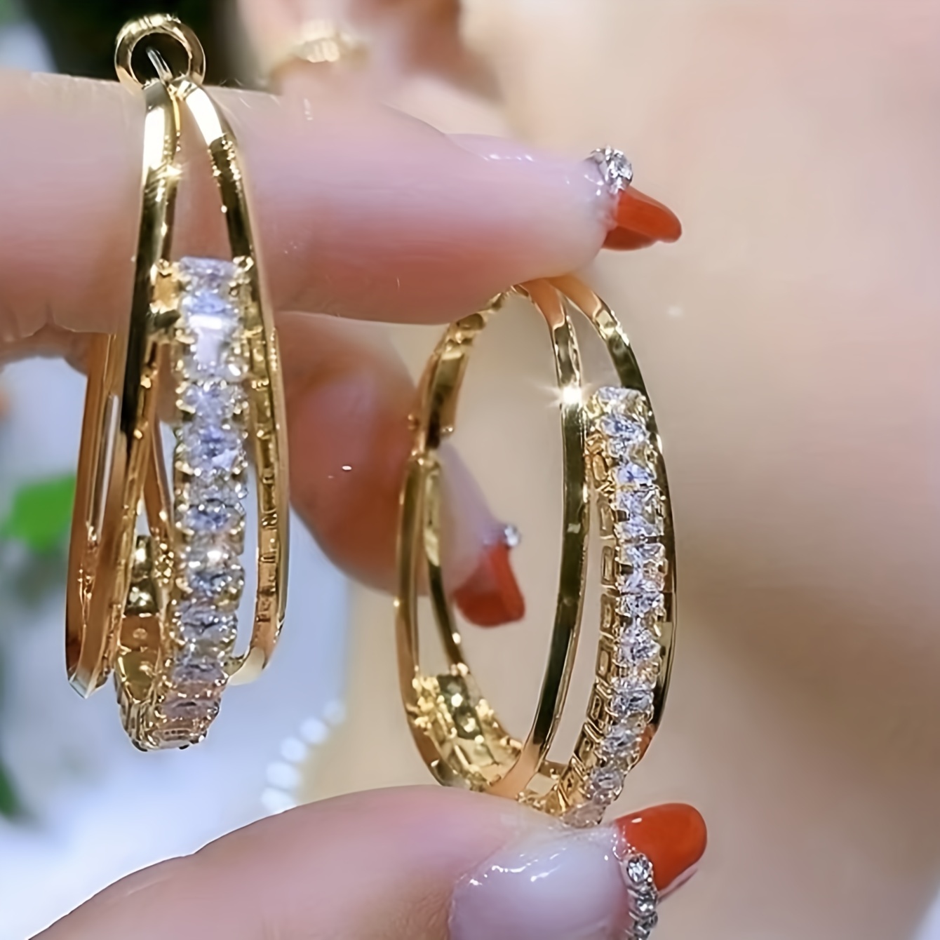 Shiny Rhinestone Decor Hoop Earrings - Retro Elegant Style Zinc Alloy Jewelry for Delicate Female Gift