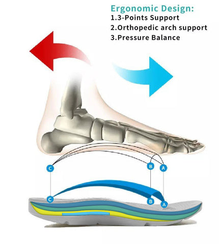 The Special Three-Arch-Support design makes sure your weight is evenly distributed across the toes, arch & ball of your feet.