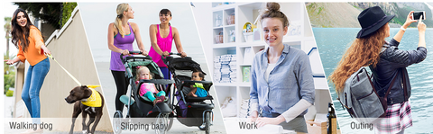 • Occasions:Workout, exercising, tennis, walking, daily work, dog walking, shopping, traveling