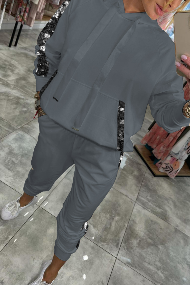 Women's Hooded Long Sequined Casual Suit